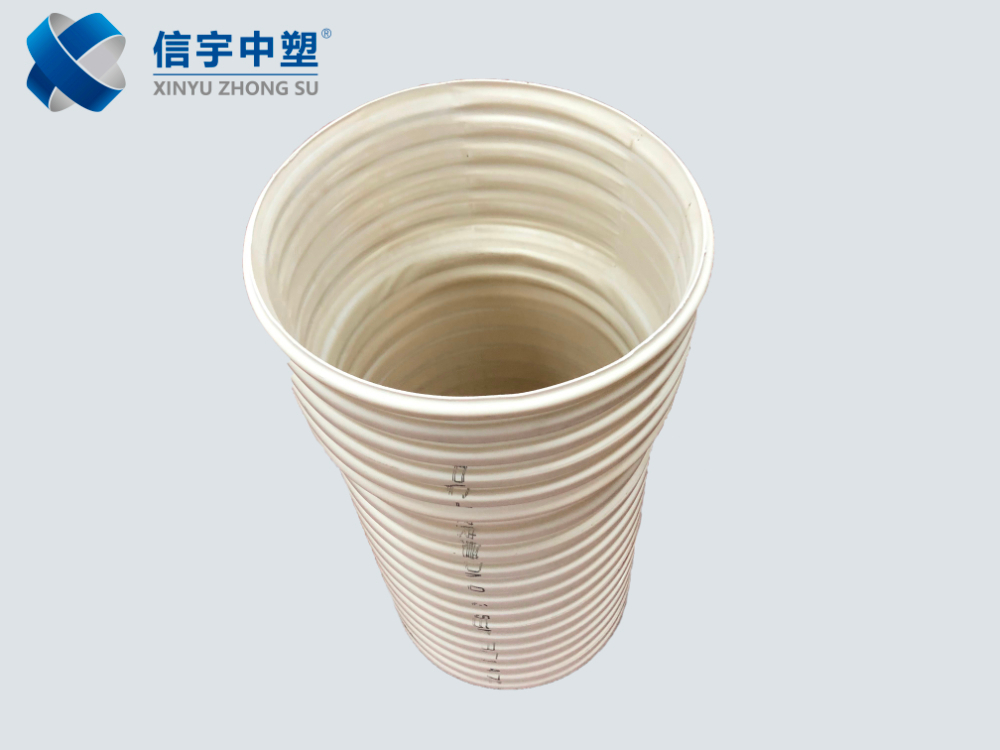“信宇中塑”牌PVC-U双壁波纹管是一种以聚氯乙烯树脂为主要原料,加入适量助剂,经挤出成型的新型管材。产品具有重量轻、排水阻力小、抗压强度高、耐腐蚀、施工方便等优点,广泛应用于建筑物室外排水、市政排污等领域。